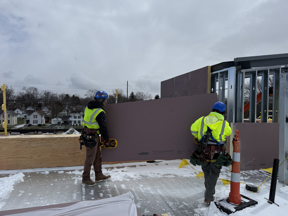 ArmorWall™ is a revolutionary composite panel that drastically reduces installation steps and accelerates dry-in schedules. By choosing this system, the crew at Lakeside Interiors was able to minimize onsite waste and eliminate the need for separate weather barriers and insulation.